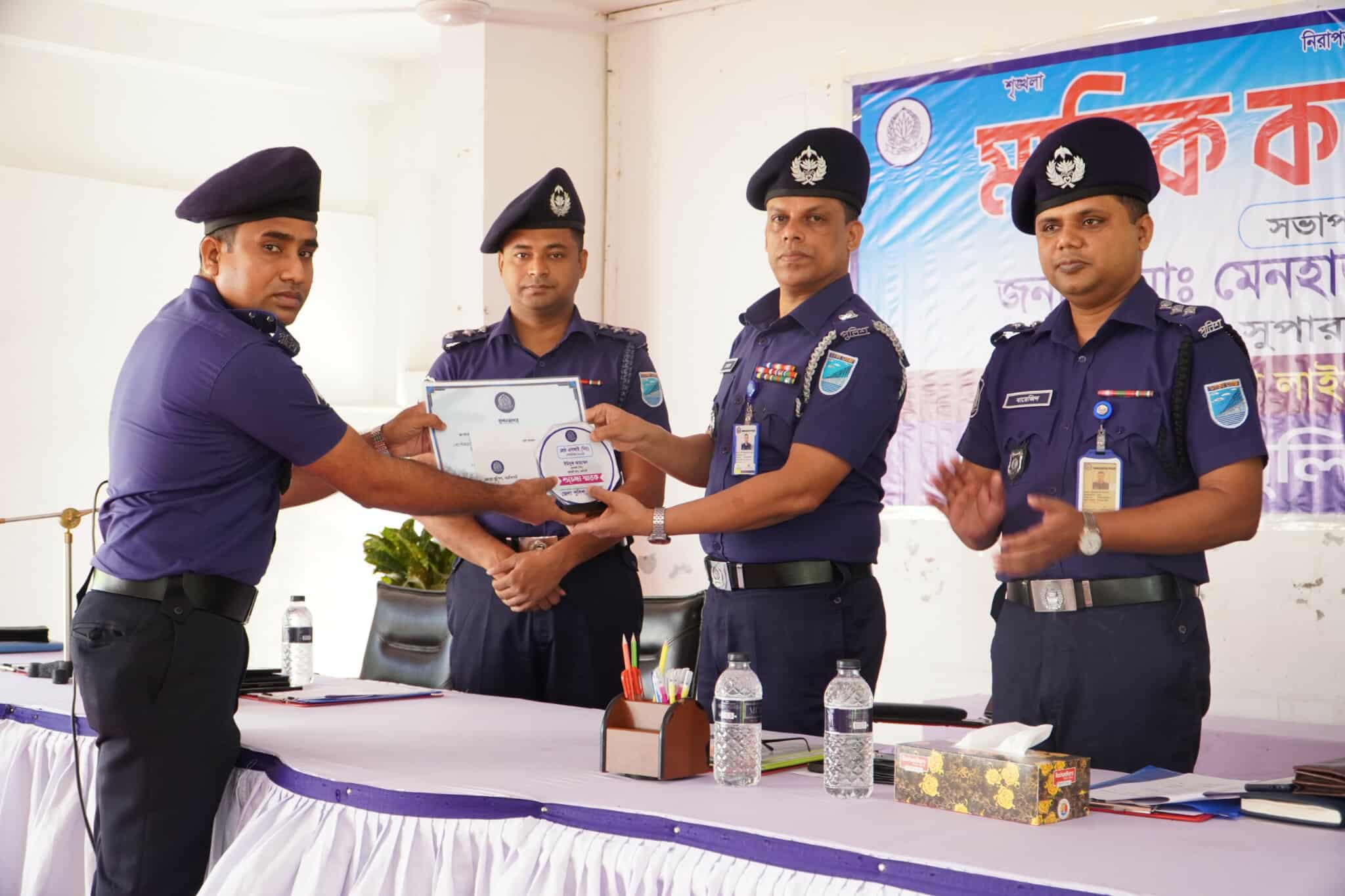 মুহাম্মদ মুছা মিয়া: নরসিংদী জেলায় সেপ্টেম্বর-২০২৫ইং মাসের শ্রেষ্ঠ পুলিশ অফিসার নির্বাচিত হলেন মাধবদী থানার এসআই ইউসুফ আহম্মেদ। গত ১৫ অক্টোবর নরসিংদী জেলা পুলিশ সুপার মোঃ মেনহাজুল আলম পিপিএম এর সভাপতিত্বে এক অনুষ্ঠানের মাধ্যমে বিভিন্ন ক্যাটাগরীতে এই পুরষ্কার প্রদান করা হয়। সেপ্টম্বর মাসের কর্মমূল্যায়নে শ্রেষ্ঠ নির্বাচিত হন মাধবদী থানার এসআই ইউসুফ আহম্মেদ। এসময় তার হাতে সম্মাননা স্মারক, সার্টিফিকেট ও সম্মানী খাম তোলে দেন জেলা পুলিশ সুপার। ভবিষ্যতে যেন পুলিশ অফিসারগণ আরো মনোবল, পেশাদারিত্ব ও কর্মোদ্দীপনা বৃদ্ধি করতে পারে সেজন্য উৎসাহমূলক এই পুরষ্কার প্রদান করে পুলিশ বিভাগ। এসময় অনুষ্ঠানে নরসিংদী জেলা পুলিশের উর্ধতন কর্মকর্তাসহ অনেকেই উপস্থিত ছিলেন।