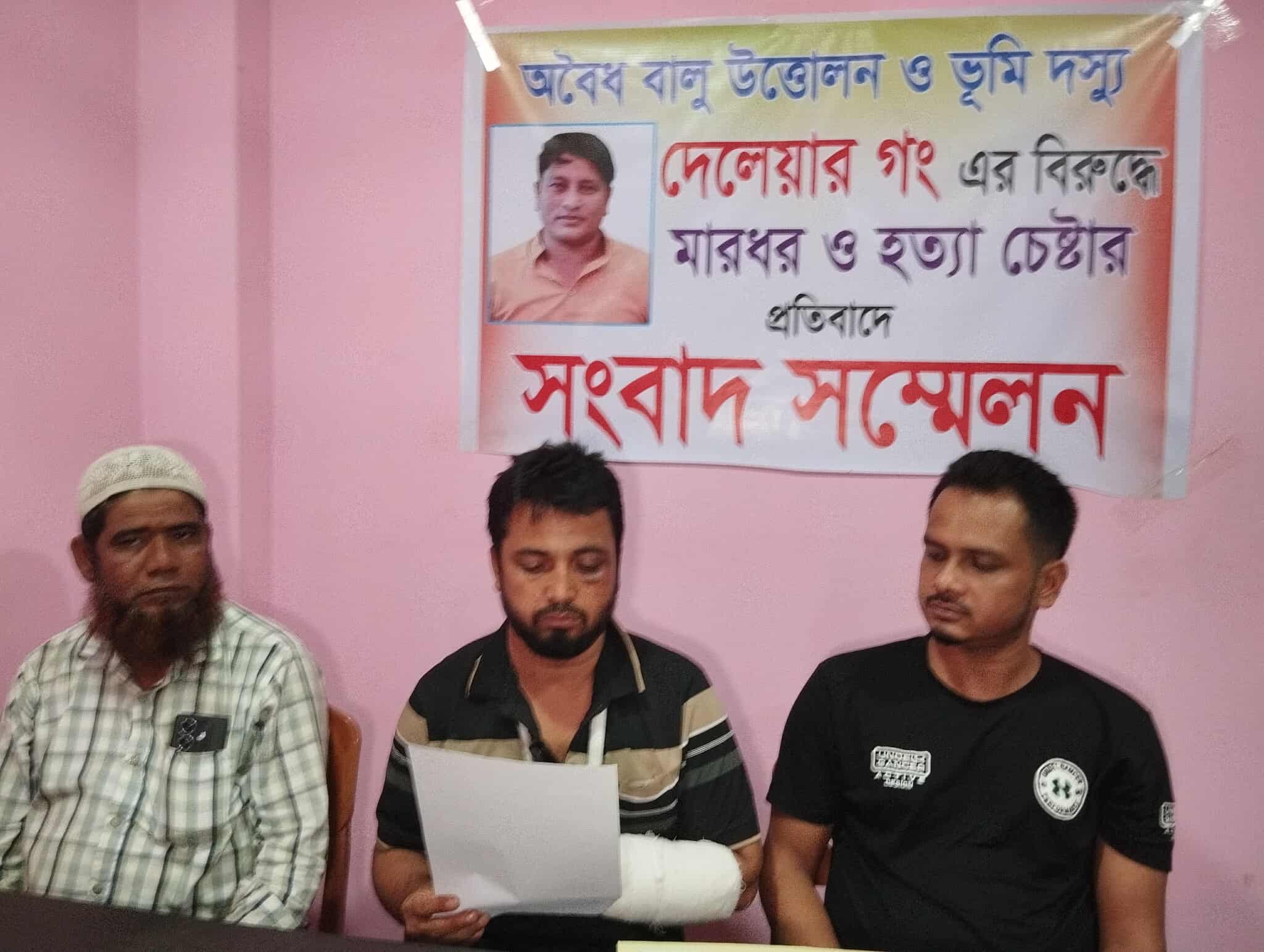 পরে এলাকাবাসী গুরুতর আহত অবস্থায় আমাকে উদ্ধার করে নরসিংদী সদর হাসপাতালে ভর্তি করে। হাসপাতালে চিকিৎসা শেষে মাধবদী থানায় এব্যাপারে লিখিত অভিযোগ দায়ের করা হলেও অপরাধীদের গ্রেফতারে পুলিশ কোনো কার্যকর ব্যবস্থা গ্রহণ করেনি। বর্তমানে আমি আমার পরিবার-পরিজন নিয়ে চরম নিরাপত্তাহীনতায় ভুগছি। তাই আপনাদের মাধ্যমে এই ঘটনার সুষ্ঠু তদন্ত সাপেক্ষে অবৈধ বালু উত্তোলন ও আমার উপর সন্ত্রাসী হামলার মূল হোতা দেলোয়ার হোসেন ও তার সহযোগীদের দ্রæত গ্রেফতার করে দৃষ্টান্তমূলক শাস্তি নিশ্চিত করার পাশাপাশি দেলোয়ার হোসেনকে বিএনপি থেকে আজীবনের জন্য বহিষ্কারের জোর দাবি জানাচ্ছি।