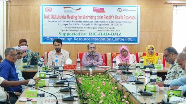 সুমন পালঃ নরসিংদীতে প্রবীণ বয়স্ক ব্যাক্তিদের স্বাস্থ্য সুরক্ষা ও চিকিৎসা ব্যয় হ্রাস করার লক্ষ্যে রিসোর্স ইন্টিগ্রেশন সেন্টার(রিক) এর আয়োজনে সভা অনুষ্ঠিত হয়েছে ১৫ অক্টোবর বুধবার সকালে নরসিংদী জেলা সিভিল